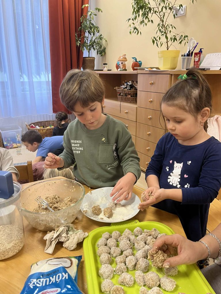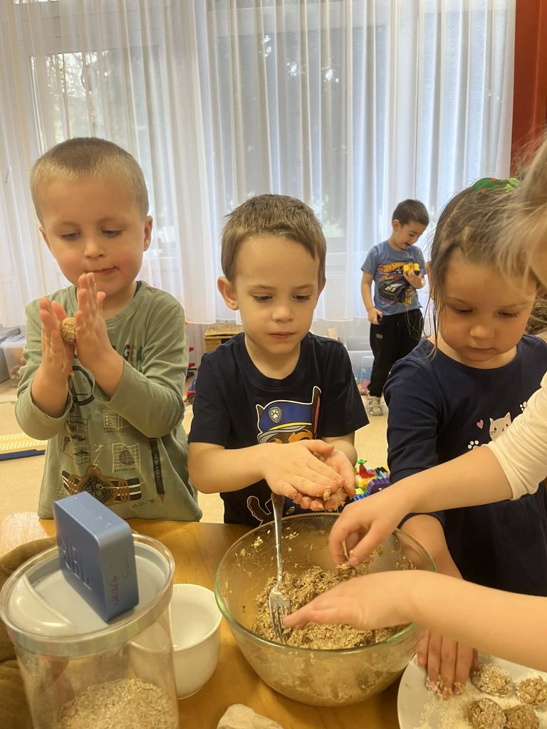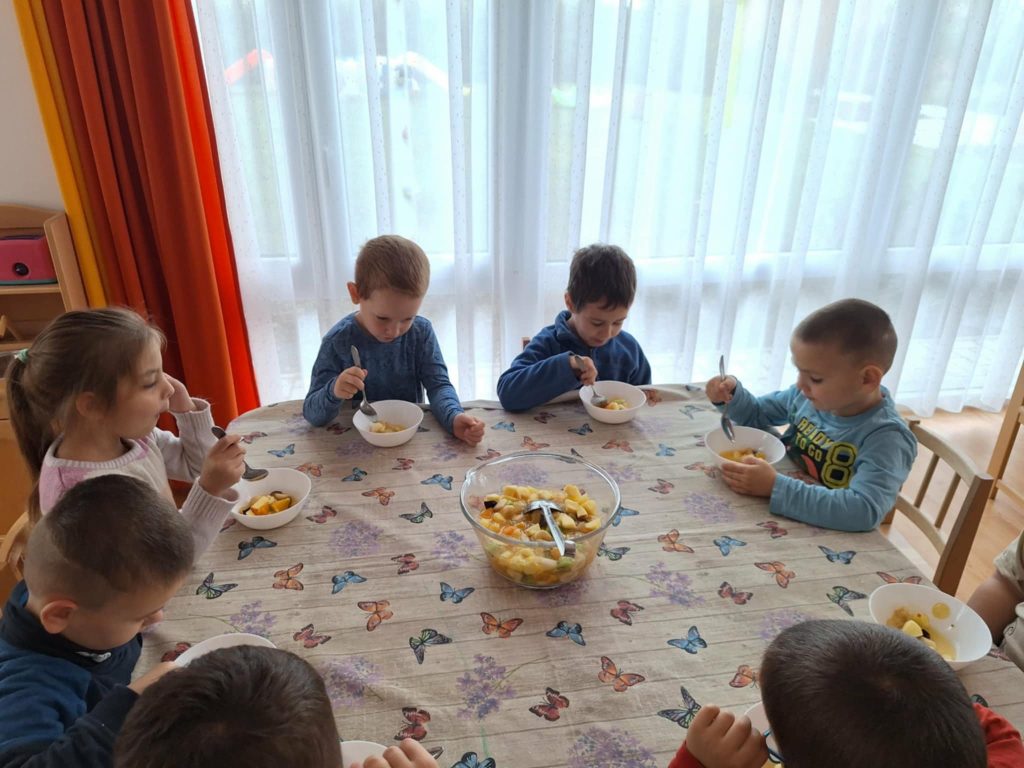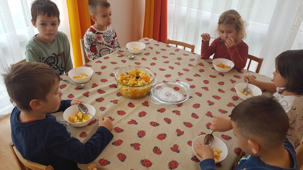 A hét folyamán sokat beszélgettünk az egészséges életmódról, többek között az egészséges ételekről és a rendszeres mozgásról, a megelőzésről, a helyes fogápolásról, a látás és szem egészségéről, az orvosi szűrővizsgálatok előnyeiről. Tettük persze mindezt játékosan, kézműveskedve, mesélve, mondókázva, dalolva, pozitív példát mutatva. A gyerekek plakátot készíthettek, akadálypályán mozoghattak, varázserdőben kirándulhattak, egészséges sütit vagy gyümölcssalátát készíthettek, nem csak az ízeket élvezve, hanem a közös munkát és aktivitást is.