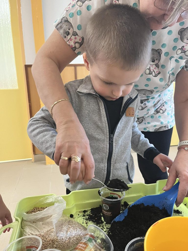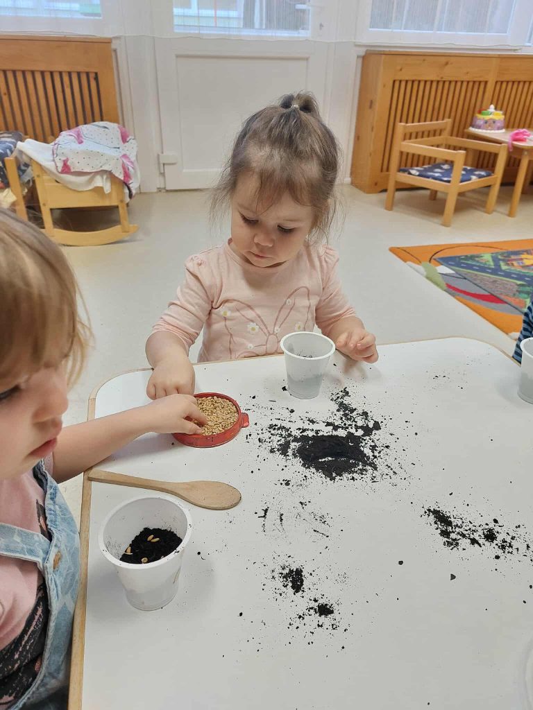 Kis- és középső csoportosaink mellett bölcsődés gyermekeink is vetettek búzát.