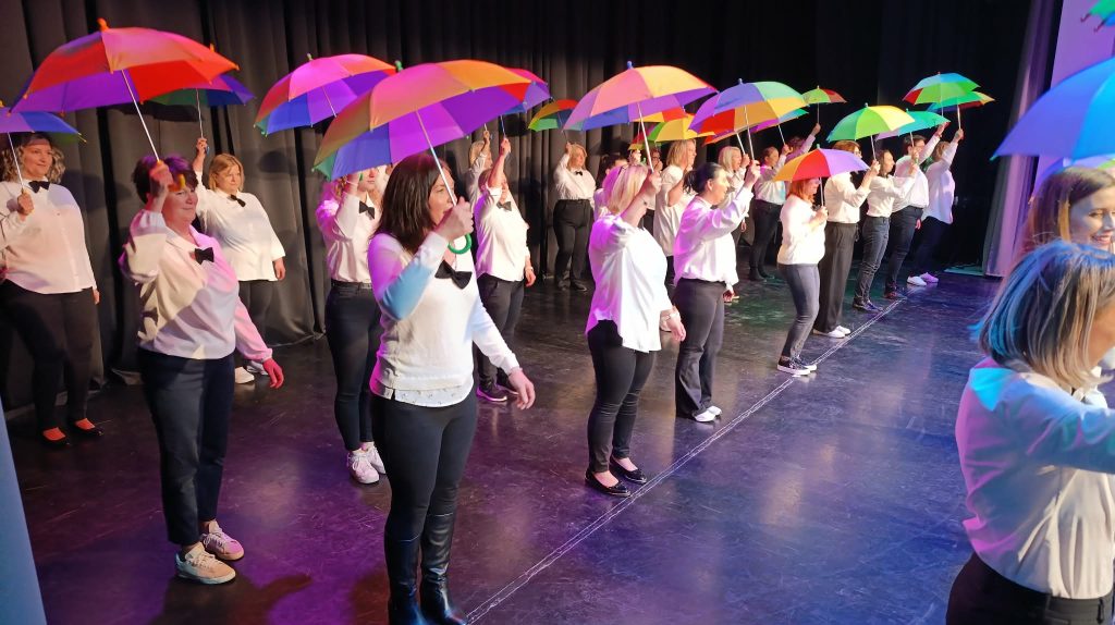 A gyerekek a Judit és a Zenemanók „Gyermek volt minden óriás” című dalára táncoltak a színpadon. Nemcsak a dalszöveg, hanem a produkciójuk is azt sugallta, hogy az élet szép és csodás – ehhez elég volt vidám kis arcukra nézni. Rendhagyó módon idén az óvoda dolgozói is készültek egy táncos produkcióval, meglepetésként a gyermekeknek. Előadásunkkal Mary Poppins gondolatait idéztük: ne feledjük, akármi bánt is, az élet csodás – csak mosolyogni kell, szívvel is és lélekkel.